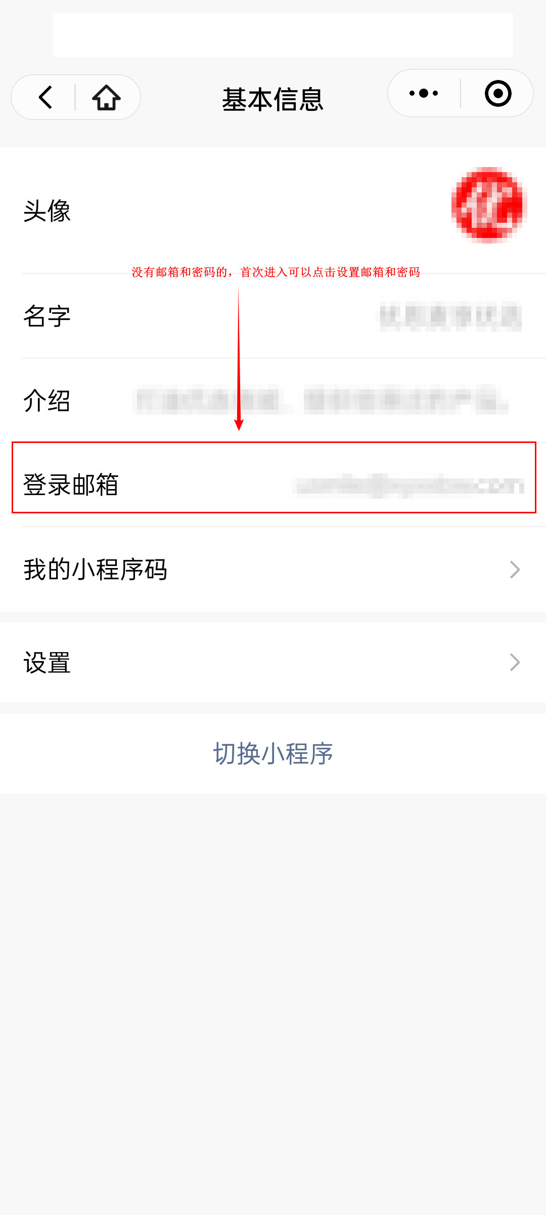 小程序设置邮箱和密码